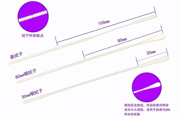 產(chǎn)品組成:保存管(內(nèi)含保存液)+拭子,保存管由醫(yī)用級PP材料組成,拭子ABS桿+尼龍植絨組成,經(jīng)EO或伽馬輻照滅菌,有鼻拭子、鼻拭子套裝、30咽拭子、30咽拭子套裝、80咽拭子等型號