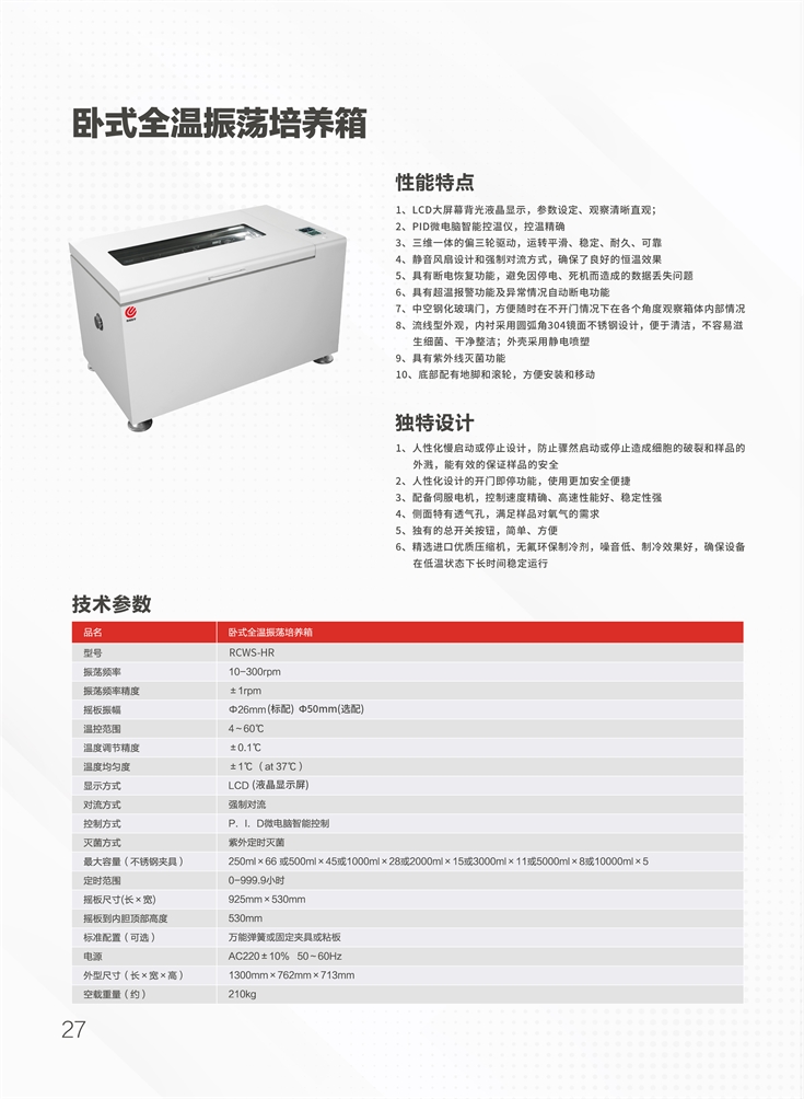 RCWS-HR臥式全溫振蕩培養箱