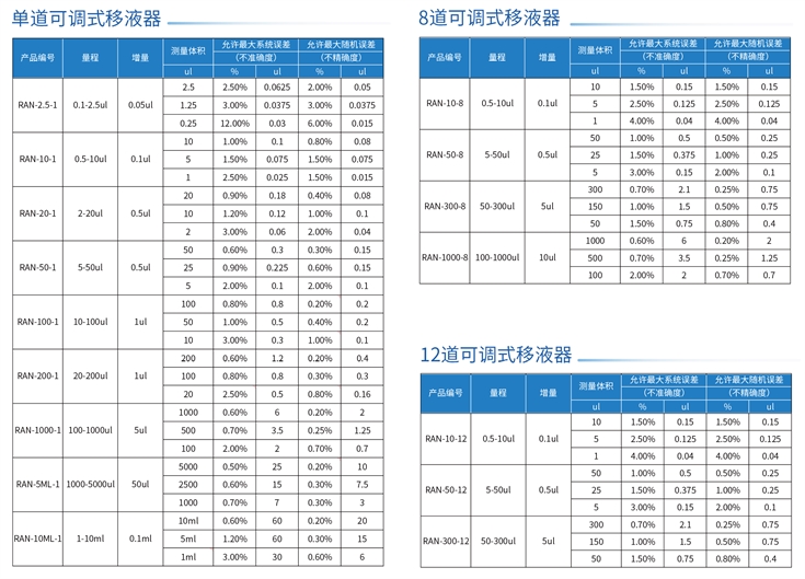 · 重量輕,符合人體工程學 · 量程范圍廣(0.1-10000ul) · 易于校準和維護 · 根據ISO8655標準進行校準 · 每支移液器附有單獨的檢測證書 · 下部可用于高壓滅菌